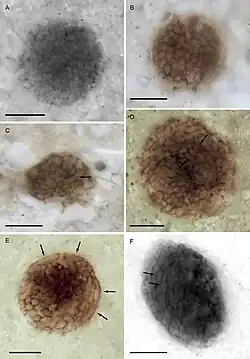 - 1 2 Strother, Paul K.; Brasier, Martin D.; Wacey, David; Timpe, Leslie; Saunders, Martin; Wellman, Charles H. (April 2021). "A possible billion-year-old holozoan with differentiated multicellularity". Current Biology. 31 (12): 2658–2665.e2. Bibcode:2021CBio...31E2658S. doi:10.1016/j.cub.2021.03.051. PMID 33852871.