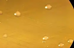 | Close view of Petri dish culture plate containing brain heart infusion (BHI) agar growth medium, inoculated with Bifidobacterium bifidum which, after a 42–72hr incubation period, has developed dewdrop-type bacterial colonies | |