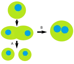 • Merging of newly formed cells: Two cells that have just finished cytokinesis merge into one another. This process is not entirely understood.[1]
