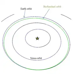 ![]() Illustration of BioSentinel in heliocentric orbit | |