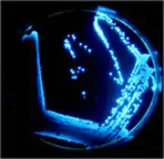 Bioluminescent bacteria are light-producing bacteria that are predominantly present in sea water, marine sediments, the surface of decomposing fish and in the gut of marine animals. While not as common, bacterial bioluminescence is also found in terrestrial and freshwater bacteria.[1] Bioluminescent bacteria may be free-living (such as Vibrio harveyi) or in symbiosis with animals such as the Hawaiian Bobtail squid (Aliivibrio fischeri) or terrestrial nematodes (Photorhabdus luminescens). The host organisms provide bioluminescent bacteria a safe home and sufficient nutrition. In exchange, the hosts use the light produced by the bacteria for camouflage, prey and/or mate attraction. Bioluminescent bacteria have evolved symbiotic relationships with other organisms in which both participants benefit each other equally.[2] Bacteria also use luminescence reaction for quorum sensing, an ability to regulate gene expression in response to bacterial cell density.[3]