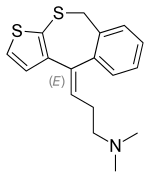 - ↑ Pharmacopoea Bohemoslovenica 4 (1987), vol. 2, p. 132 states that Bisulepinium chloratum (bisulepinium chloride) is trans-[3-(4,9-dihydro-thieno[2,3-c][2]benzithiepin-4-yliden)propyl]dimethylamoniumchlorid (Czech). The cis- isomer is considered as an impurity, max. amount 2.0 %.