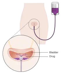 {{cite journal}}: CS1 maint: unflagged free DOI (link) - ↑ Witjes JA, Hendricksen K (January 2008). "Intravesical pharmacotherapy for non-muscle-invasive bladder cancer: a critical analysis of currently available drugs, treatment schedules, and long-term results". European Urology. 53 (1): 45–52. doi:10.1016/j.eururo.2007.08.015. PMID 17719169.