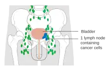 {{cite journal}}: CS1 maint: unflagged free DOI (link) - ↑ Ku JH, Kang M, Kim HS, Jeong CW, Kwak C, Kim HH (June 2015). "Lymph node density as a prognostic variable in node-positive bladder cancer: a meta-analysis". BMC Cancer. 15: 447. doi:10.1186/s12885-015-1448-x. PMC 4450458. PMID 26027955.