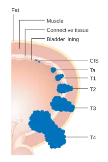 In the TNM staging system (8th Edn. 2017) for bladder cancer:[73][74]