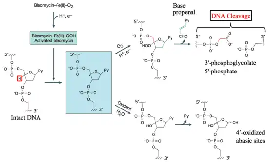 - ↑ Hecht, SM (2000). "Bleomycin: new perspectives on the mechanism of action". J. Nat. Prod. 63 (1): 158–168. doi:10.1021/np990549f. PMID 10650103.