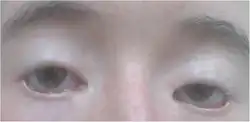 The most prominent symptoms of BPES are horizontally narrow eyes (blepharophimosis), drooping eyelids (ptosis) and a fold of skin running from the side of the nose to the lower eyelid (epicanthus inversus). Other common symptoms include lack of an eyelid fold, an appearance of widely spaced eyes (telecanthus), low nose bridge and ear malformations (including cupping and incomplete development). Rare symptoms include microphthalmos (abnormally small eyes), tear ducts in the wrong location and a high-arched palate.[1] Type 1 BPES is distinguished by including premature ovarian insufficiency (POI) in females, which causes menopausal symptoms and infertility in patients as young as 15 years old.[1]