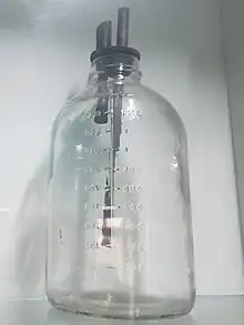 Dr. Luis Agote (2nd from right) overseeing one of the first safe and effective blood transfusions in 1914Old glass used for blood transfusion.