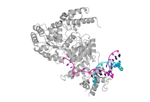 | Crystal structure of the Bloom's syndrome helicase BLM in complex with DNA (PDB ID: 4CGZ). | |