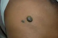 BRBNS is a venous malformation,[4] formerly, though incorrectly, thought to be related to the hemangioma. It carries significant potential for serious bleeding.[5] Lesions are most commonly found on the skin and in the small intestine and distal large bowel. Other organs with the lesions can also be found on the central nervous system, liver, and muscles.[6] It usually presents soon after birth or during early infancy.[6][7]