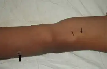 | Unusually thickened ulnar nerve in individual with borderline leprosy | |