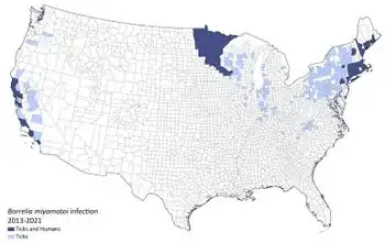 - ↑ Burde, Jed; Bloch, Evan M.; Kelly, Jill R.; Krause, Peter J. (3 April 2023). "Human Borrelia miyamotoi Infection in North America". Pathogens (Basel, Switzerland). 12 (4): 553. doi:10.3390/pathogens12040553. ISSN 2076-0817.