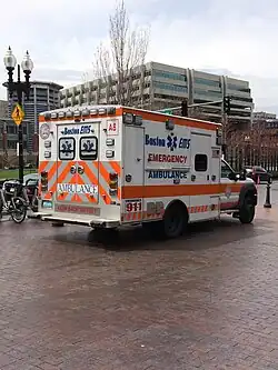 Boston Emergency Medical Services (Boston EMS) provides basic life support (BLS) and advanced life support (ALS) ambulance units throughout the neighborhoods in the city of Boston, Massachusetts, USA. Boston EMS is a public safety agency responding to 911 calls alone or with the Boston Police and/or Boston Fire Departments dependent upon the nature of an incident. The agency employs over 400 emergency medical technicians (EMT) and paramedics.[1]