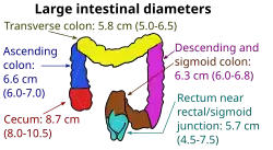 Average inner diameters and ranges of different sections of the large intestine.[12]