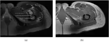 | a,b) MRI showing the Brodie's abscess in the left proximal femur | |