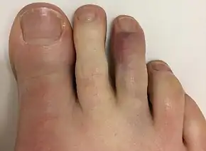 - ↑ Schnaue-Constantouris, Eileen M.; Birrer, Richard B.; Grisafi, Patrick J.; Dellacorte, Michael P. (1 February 2002). "Digital foot trauma: emergency diagnosis and treatment1". Journal of Emergency Medicine. 22 (2): 163–170. doi:10.1016/S0736-4679(01)00458-9. ISSN 0736-4679. PMID 11858921. Archived from the original on 11 June 2022. Retrieved 14 April 2022.