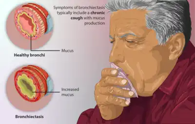 - ↑ 20.0 20.1 20.2 "Bronchiectasis | National Heart, Lung, and Blood Institute (NHLBI)". www.nhlbi.nih.gov. Archived from the original on 2019-12-21. Retrieved 2019-11-20.
