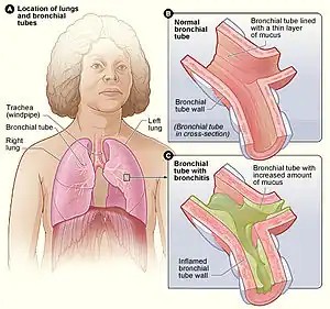 - ↑ 1.0 1.1 1.2 1.3 1.4 1.5 1.6 1.7 "Bronchitis". NHLBI. Archived from the original on 29 June 2019. Retrieved 9 June 2019.