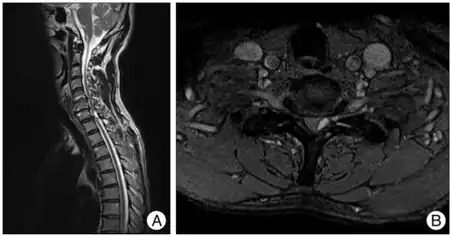 | a,b)Brown-séquard syndrome caused by a cervical synovial cyst. | |