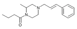 Bucinnazine (AP-237, 1-butyryl-4-cinnamylpiperazine) is an non-opioid analgesic drug that was widely used in China to treat pain in cancer patients as of 1986.[1] It is one of the most potent compounds among a series of piperazine-amides first synthesized and reported in Japan in the 1970s.[2][3][4] Bucinnazine has analgesic potency comparable to that of morphine, but with a relatively higher therapeutic index.