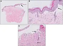 - ↑ Witte, Mareike; Zillikens, Detlef; Schmidt, Enno (2 November 2018). "Diagnosis of Autoimmune Blistering Diseases". Frontiers in Medicine. 5. doi:10.3389/fmed.2018.00296. PMC 6224342. PMID 30450358.