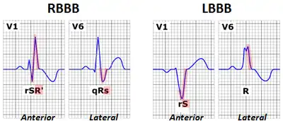 - ↑ 2.0 2.1 2.2 2.3 2.4 Harkness, WT; Hicks, M (January 2020). "Right Bundle Branch Block". StatPearls. PMID 29939649.