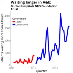 - ↑ "Burton Hospitals NHS Foundation Trust is out of special measures". Burton Mail. 22 October 2015. Archived from the original on 8 December 2015. Retrieved 29 November 2015.
