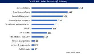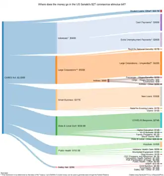 - ↑ Stein, Jeff (March 25, 2020). "What's in the $2.2 trillion coronavirus Senate stimulus package". The Washington Post. Archived from the original on February 15, 2021. Retrieved March 26, 2020.