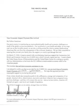 - ↑ Leopold, Jason (October 18, 2024). "Trump's Name on Treasury Stimulus Checks Was Actually Legal". Bloomberg News. Retrieved October 21, 2024.