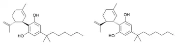 - ↑ Hanus LO, Tchilibon S, Ponde DE, Breuer A, Fride E, Mechoulam R (March 2005). "Enantiomeric cannabidiol derivatives: synthesis and binding to cannabinoid receptors". Organic & Biomolecular Chemistry. 3 (6): 1116–23. doi:10.1039/B416943C. PMID 15750656.