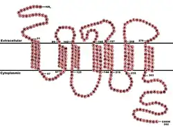 The CCR5 protein belongs to the beta chemokine receptors family of integral membrane proteins.[17][18] It is a G protein–coupled receptor[17] which functions as a chemokine receptor in the CC chemokine group.