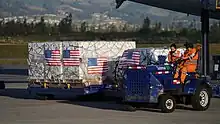 On 24 February 2021, Ghana became the first country in the world to receive vaccines through COVAX when 600,000 doses of the Oxford–AstraZeneca vaccine were delivered to Accra.[23][30] On 2 March, COVID-19 vaccines were being distributed in Ghana by Zipline drones.[31] This method allows reaching remote areas (which are underserved by traditional logistics).[32]