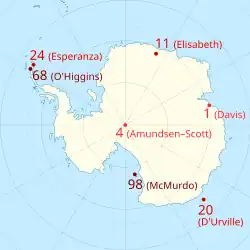 - ↑ Taylor, Adam; Pitrelli, Stefano (24 March 2020). "One continent remains untouched by the coronavirus: Antarctica". The Washington Post. Archived from the original on 1 April 2020. Retrieved 3 April 2020.