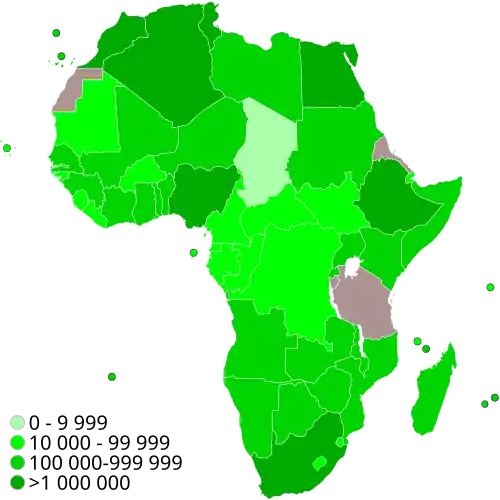 During the summer of 2021, the number of cases increased and reached almost 202,000 a week by 27 June.[41] As of 13 July 2021, 22 of the 55 African states had reported cases of the Delta variant.[41]