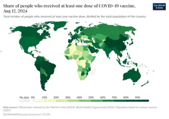 Despite these breakthroughs, Africa is the world's least vaccinated continent.[26] At the beginning of June 2021 the World Health Organization reported that COVID-19 vaccine shipments had ground to a "near halt" in Africa.[27] On 8 June, the Sudanese-British billionaire philanthropist Mo Ibrahim sharply criticized the international community for failing to ensure equitable vaccine distribution across the globe.[28] By 8 July 2021, only 2% of the continent had been inoculated.[10]
