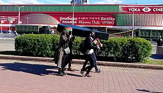 - ↑ "Активисты "Молодежного блока" за акцию с гробом получили 18 суток административного ареста на двоих" (in Russian). Tut.by. 11 May 2020. Archived from the original on 28 July 2020. Retrieved 11 May 2020.