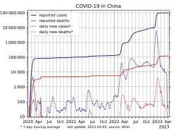 - ↑ Griffiths, Robbie (25 December 2022). "China has stopped publishing daily COVID data amid reports of a huge spike in cases". NPR. Archived from the original on 25 December 2022. Retrieved 25 December 2022.
