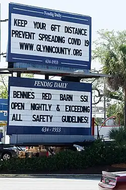 - ↑ "'Trump COVID Superspreader Event' billboard appears before another MAGA rally". wtsp.com. October 15, 2020. Archived from the original on January 5, 2021. Retrieved October 31, 2020.
