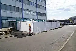 The first case detected in the capital, Berlin, was reported on 2 March 2020.[9] On 17 March, the government of Berlin announced plans to open a 1,000-bed hospital for COVID-19 patients on the grounds of Messe Berlin in the Westend locality of Charlottenburg-Wilmersdorf.[94] The hospital opened on 11 May 2020.[95]