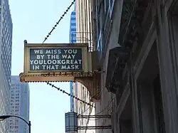 - ↑ Lukach, Adam (September 23, 2020). "Chicago restaurants, bars closed". Chicago Tribune. Retrieved September 25, 2020.