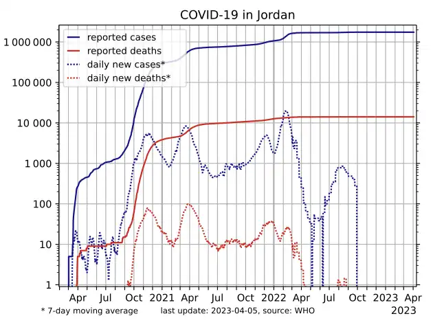 24. "COVID-19 cases in Jordan reach 40". en.royanews.tv. Archived from the original on 17 March 2020. Retrieved 25 March 2020.