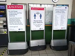 - ↑ "New Tube restrictions to stop non-essential trips". BBC News. 25 March 2020. Archived from the original on 8 April 2020. Retrieved 25 March 2020.