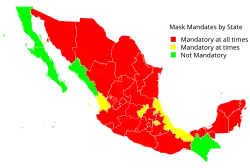 - ↑ "Mapa del coronavirus en México 12 de febrero: CDMX, Estado de México y Jalisco pasan a semáforo naranja". infobae (in European Spanish). Infobae. February 12, 2021. Retrieved February 13, 2021.