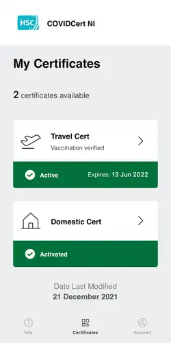 - ↑ "Covid-19: Stormont ministers vote for Covid passports". BBC News. 17 November 2021. Retrieved 17 November 2021.