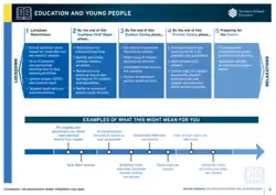 Again, on the same day, it was announced that all pupils will return to school five days a week as normal at the start of term time in September. Education Minister Peter Weir announced that years 1 to 10 will return to class in protected bubbles, with minimised movements between classes for years 11 to 14.[94]