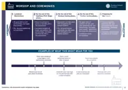 We don't underestimate the impact that the severe restrictions have had on everyone across our society. While they are still absolutely necessary, it is important that we give people hope for the future. Today we have set out our pathway for future recovery which gives an indication of how the restrictions on different aspects of life may be eased at various stages. The incremental five-step approach reflects the risk-based judgements we will make at each stage. These decisions will be evidenced by medical and scientific advice and benchmarked against our guiding principles and international best practice. The Executive's strategy is not time-bound because it's vital that we retain the flexibility needed to respond to the complex emerging situation based on all relevant evidence. Our recovery from COVID-19 will require a real partnership effort with the community. We are appealing to the public to please be patient. Keep adhering to the restrictions, follow the public health advice and stay at home. We will keep you updated every step of the way when we are in a position to slowly and carefully move out of lockdown.[67][68]