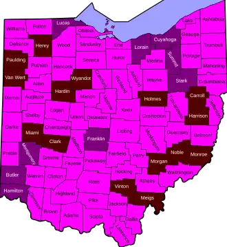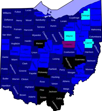 In late June and early July, some counties in Ohio experienced a sharp increase in cases.[25]