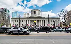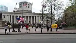 - ↑ "Photos: Protests over stay-at-home orders at Ohio Statehouse protests". April 18, 2020.