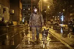 The second full day of quarantine on 17 March saw citizens being required to fill out an online form to obtain permission to leave home.[20] The military patrolled the streets of Lima to enforce this, and people were not allowed to walk together. At 8 pm that night through an organized effort, Peruvians and residents in Peru went out to their balconies and windows to applaud the front-line workers such as doctors, the Peruvian Armed Forces, market shop owners, and National Police of Peru to applaud their efforts during the pandemic.[21] The next day on 18 March, the government tightened the measures of quarantine, implementing a curfew from 8 PM-5 AM where citizens are not allowed to leave their homes.[22]