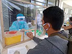The Philippines had a slightly lower testing capacity than its neighbors in Southeast Asia during the first months of the pandemic.[16][17] COVID-19 tests had to be taken in Australia, as the Philippines lacked testing kits.[18][19] By the end of January 2020, the Research Institute for Tropical Medicine (RITM) in Muntinlupa, Metro Manila, began its testing operations and became the country's first testing laboratory.[20] The Philippines' Department of Health (DOH) has since then accredited 279 laboratories that were capable of detecting the SARS-CoV-2 virus.[21] As of September 10, 2021, 277 of these have conducted 19,742,325 tests from more than 18,551,810 unique individuals.[2][3]